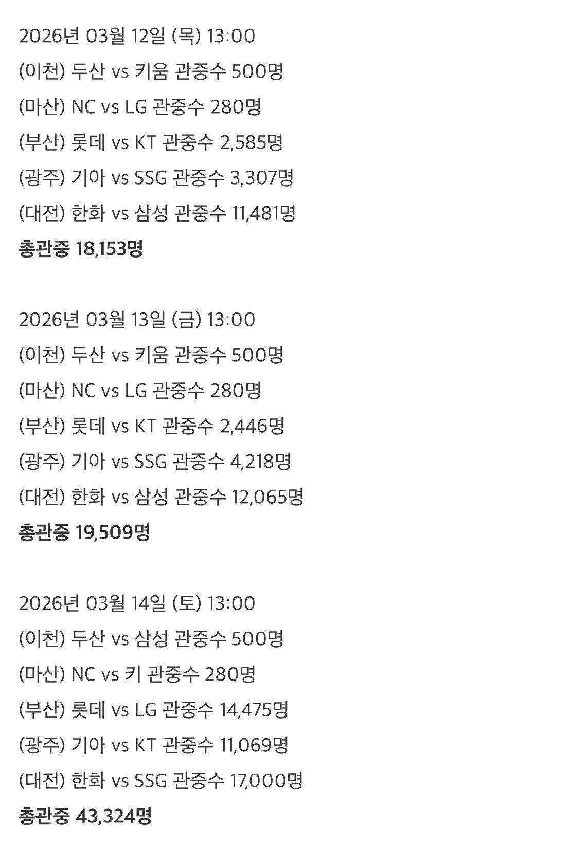 주말 경기 매진 ㄷㄷㄷ...