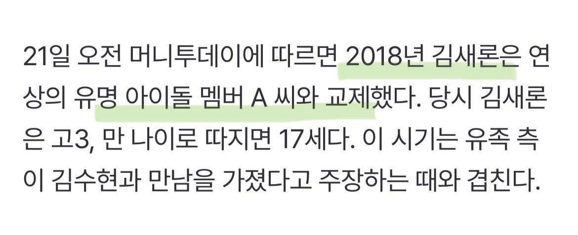 2. 2018년에 김새론과 사귀는 사이처럼 카톡을 주고 받은 사람은 유명 아이돌 랩퍼라고 기사 남