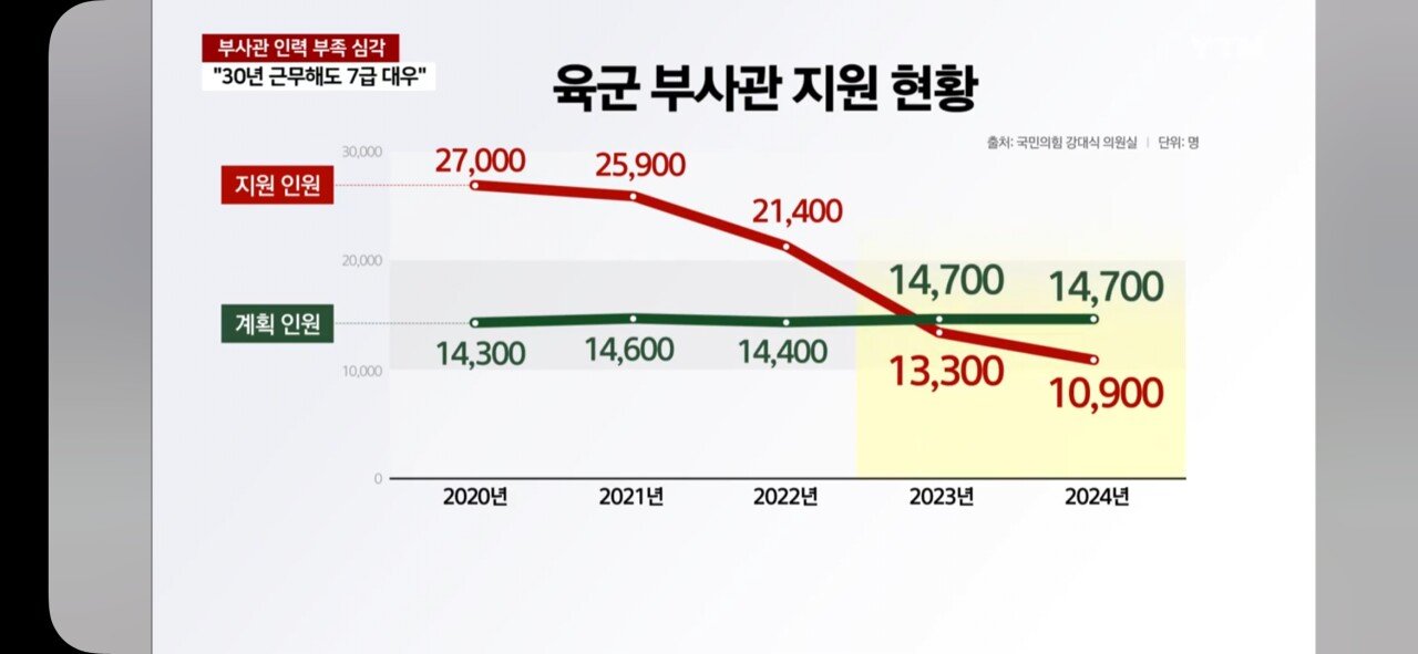 전쟁도 안났는데 징병제 국가에서 육군 하사의 7할이 그냥 없어짐.