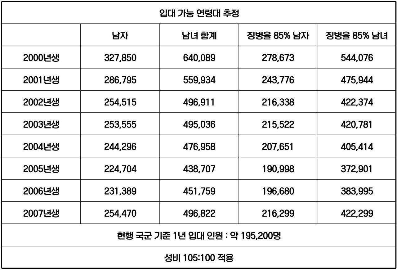 육군은 현행 30% 미달, 2년 뒤 40%이상 미달이지만