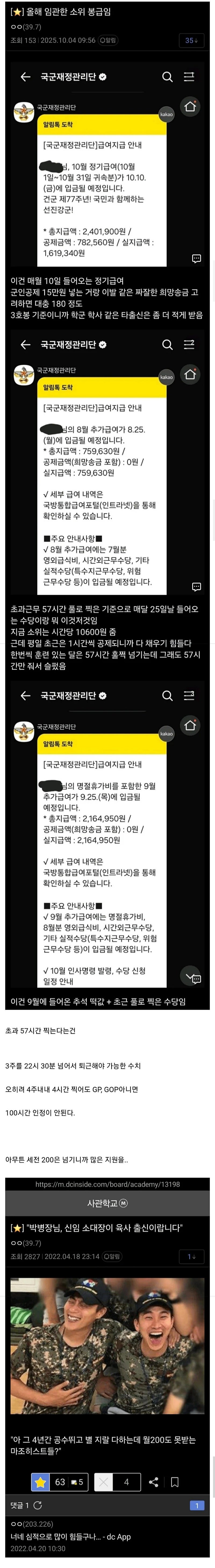 몇년을 해도 평달 실수령 떼면 병장이랑 비슷하게 받고