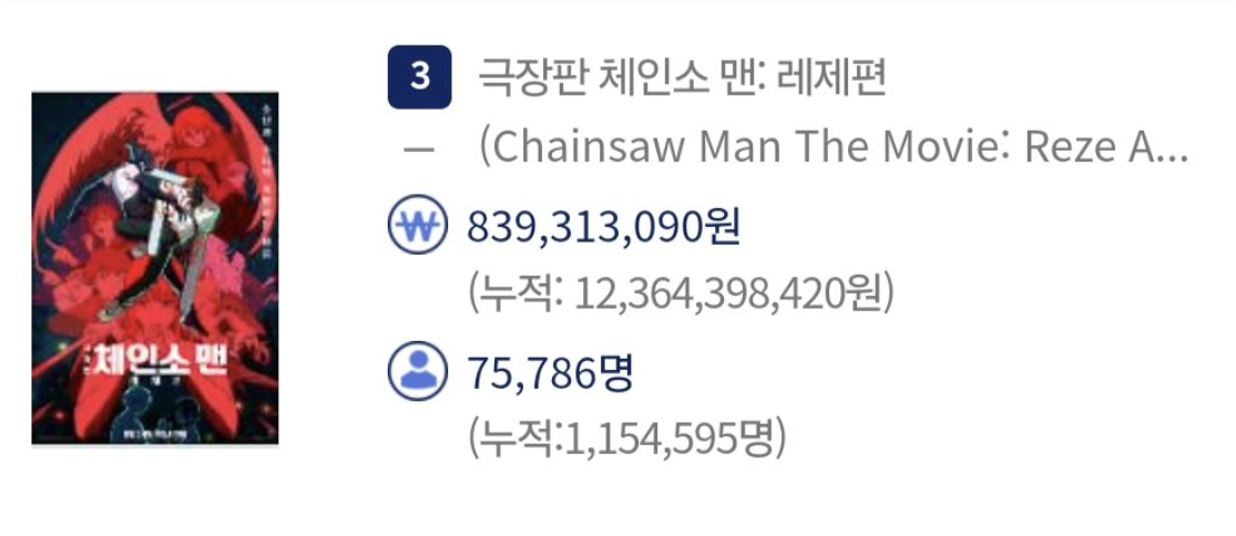 <체인소 맨: 레제편> 역대 일본 애니 영화 흥행 TOP 10 진입 댓글 0 조회 560 2025-10-07 08:14 돌잔치앤가반나 Lv.11 게시글 보기 총 게시글: 497개 총 댓글: 0개 역대 일본 애니메이션 영화 TOP 10위권으로 진입 돌잔치앤가반나님의 다른 글 25.10.13 여고생들 1박 2일 병영캠프 25.10.13 결혼 시즌2 축하받는 은지원 25.10.13 46세 가수 채연 최신 근황 25.10.13 운동복 입은 권나라 몸매