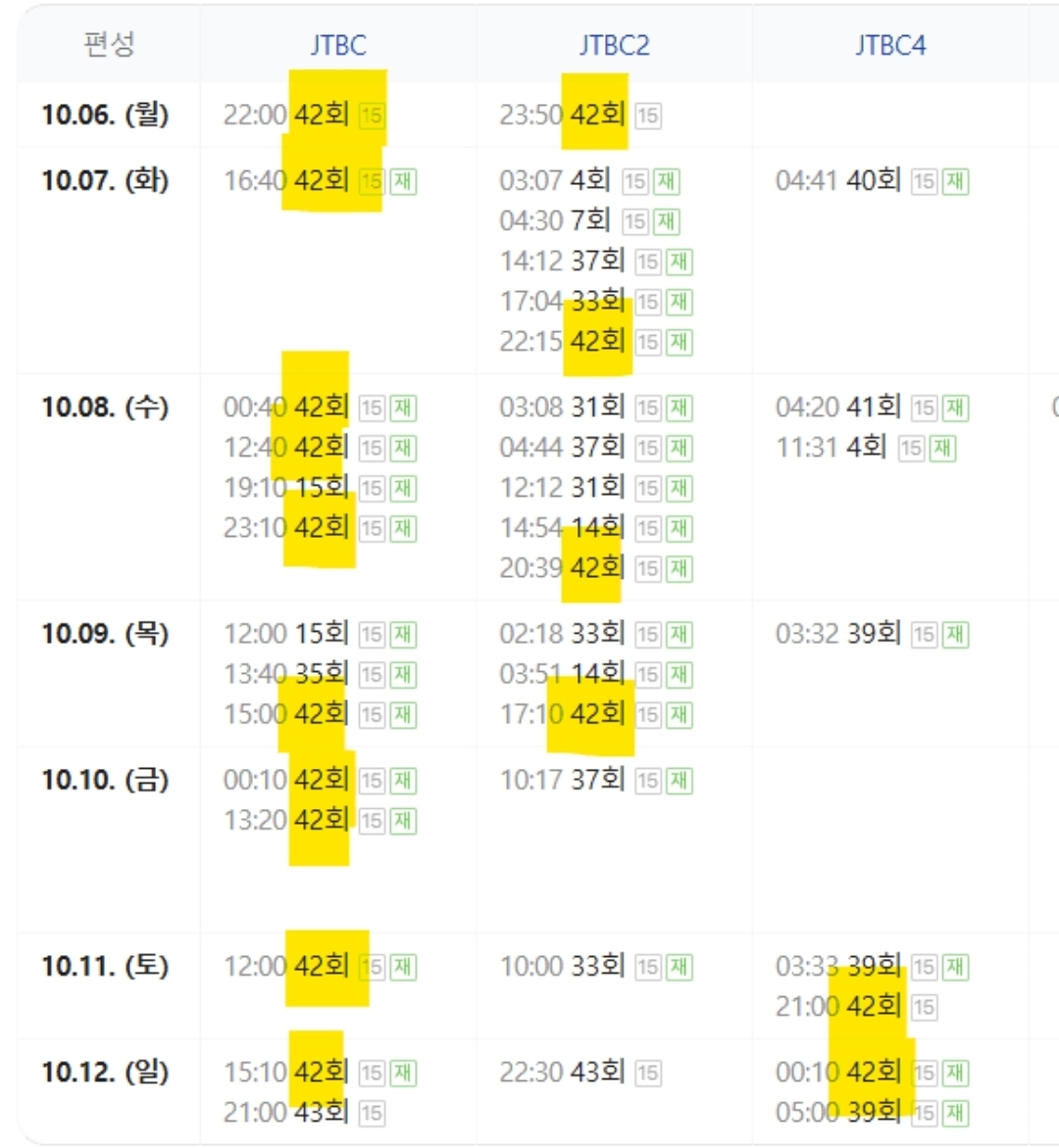 JTBC <냉장고를 부탁해> 광기의 재방송 일정