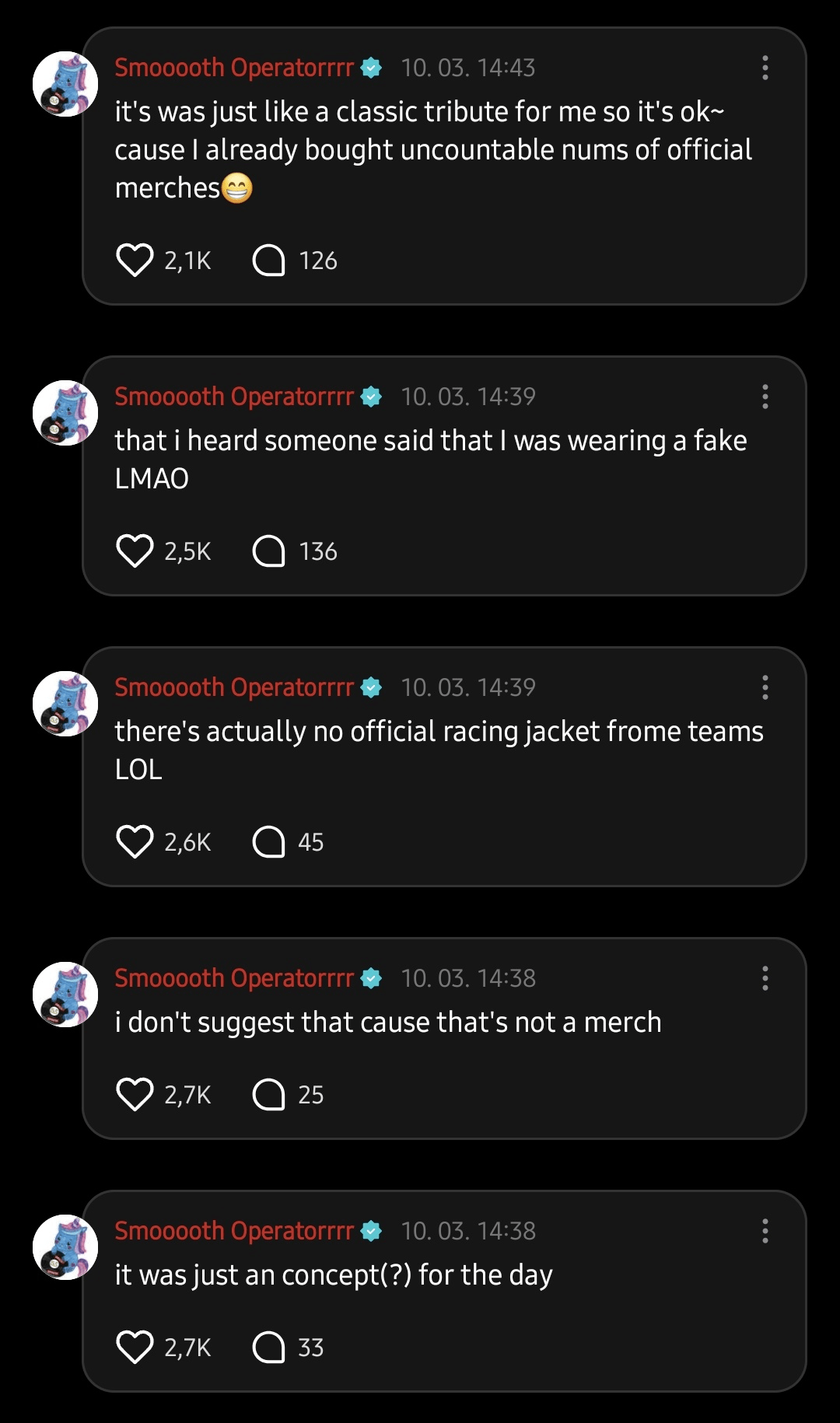 레드불 공식 행사에서 가품인거 알고서도 입은 아이돌 댓글 0 조회 518 2025-10-07 22:13 감정괴물 Lv.5 게시글 보기 총 게시글: 467개 총 댓글: 0개 문제의 알리발 5만원짜리 짭 입은 아이돌 엔하이픈 팬과 소통어블인 위버스에서 대놓고 알고서 입었다 시인함 + 다른 멤버는 공식 굿즈 입음 본인은 공식 굿즈 아닌거 알아서 내가 고르진 않았다 + 저거 짭인거 알고있다 나 이미 공식 굿즈 많이 사서 별로 신경안써~ 감정괴물님의 다른 글 25.10.11 <삼국지> 헌제의 닭국 먹방 25.10.11 하후돈 개인기 보여주는 ITZY 유나 25.10.11 주우재가 마라탕 붐일때 마라탕 단 한 번도 안 먹은 이유 25.10.11 QWER 멤버들 바지 길이