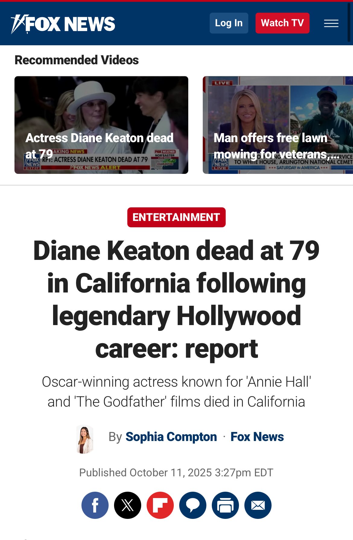 전설적인 여배우 다이앤 키튼 향년 79세로 사망 댓글 0 조회 555 2025-10-12 08:38 감정괴물 Lv.5 게시글 보기 총 게시글: 469개 총 댓글: 0개 다이앤 키튼 (1946-2025). 대부로 본격적인 스크린 데뷔, 애니홀로 아카데미 여우주연상 등 70년대 최전성기를 맞았던 원로 여배우 입니다. 특유의 패션 센스로 배우를 넘어 러블리한 시대의 아이콘으로도 자리잡았던 할리우드의 레전드 배우였죠. 애니홀에서의 사랑스러운 모습은 영원히 잊지 못할 것입니다 2020년 아카데미 시상식에서 키아누 리브스와 함께 기생충에게 각본상 시상을 하기도 했었습니다. 감정괴물님의 다른 글 25.10.12 300만뷰 넘긴 ITZY 유나 광고 영상 25.10.12 장모님의 나라.. KBS에 나온 베트남녀 미모 25.10.12 곽튜브 결혼식 하객 라인업 ㄷㄷ 25.10.12 오마이걸 승희 충격 근황