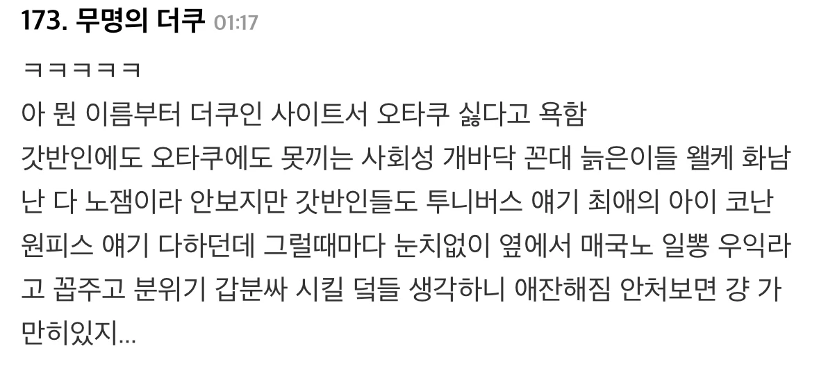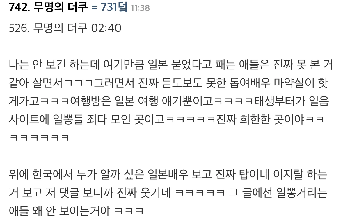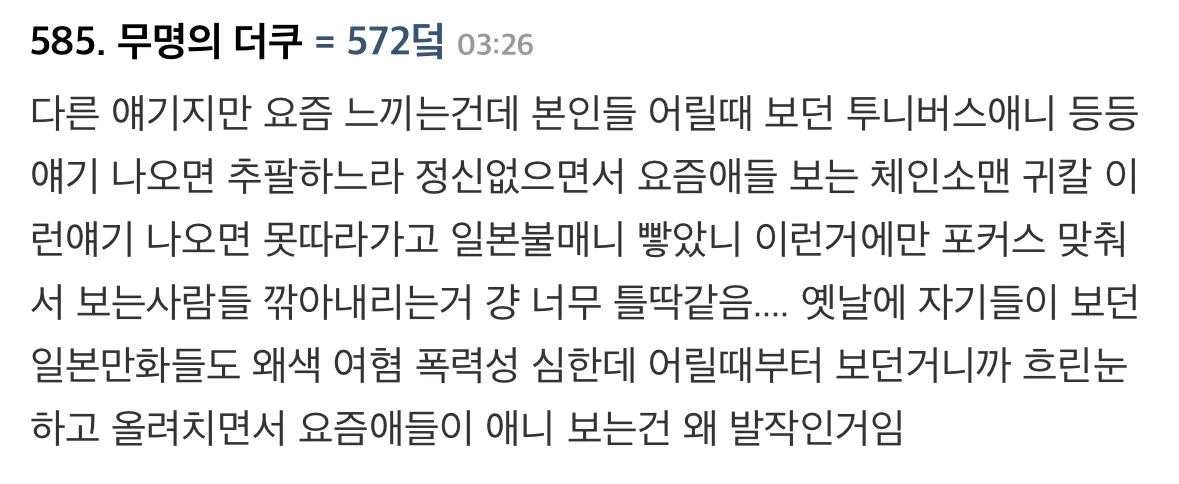또 "일본애니" 어쩌고 "일뽕"어쩌고 까대는 댓글들 등장하며