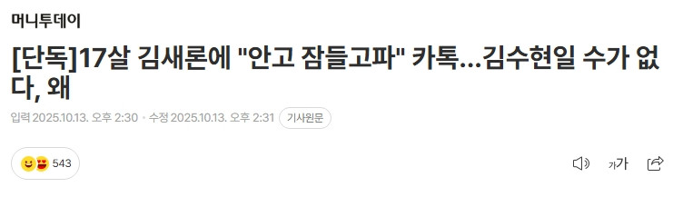 김수현이 미성년자 시절 김새론이랑 사귀지 않은 증거 댓글 0 조회 551 2025-10-13 17:09 네이마르로 Lv.4 게시글 보기 총 게시글: 477개 총 댓글: 0개 [단독]17살 김새론에 "안고 잠들고파" 카톡…김수현일 수가 없다, 왜 - 머니투데이 네이마르로님의 다른 글 25.10.13 "수입 없어 힘들다" 태진아, 빌딩 내놨다 25.10.13 sk 최태원 동거인 최신 미모 25.10.13 김은숙 신작 다 이루어질지니, 과도한 PPL 시청자 원성 25.10.13 의사협회 : 문신사들의 문신은 우리 의사들이 가르쳐주겠다