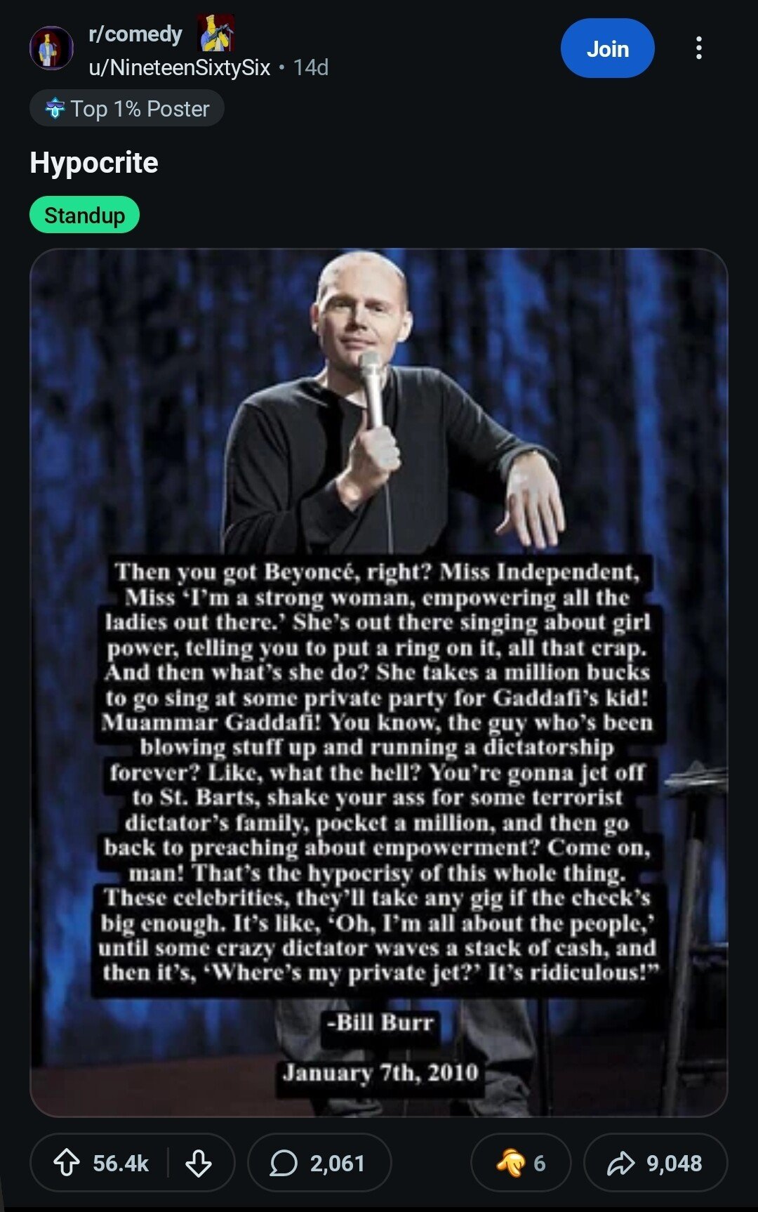 특히 빌버 같은 애는 과거에 할리우드 스타들이 중동 독재자들 파티에 가서 엉덩이 흔들고 수백만달러 받는 행위 조롱하고 그랬는데 시간 지나고 본인도 똑같이 사우디 사실 독재와 다를바 없는 국가에 가서 이빨털고 돈 야무지게 챙기기자 비평가들이 빌버 비판함