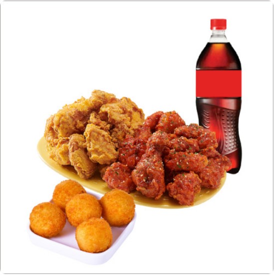 [노랑통닭] 반반치킨 +치즈볼+콜라