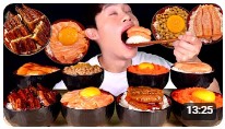 [먹방] 봉길이 - 장어덮밥 간장연어덮밥 날치알덮밥 명란덮밥 간장새우덮밥 낫또계란밥