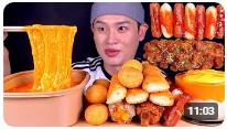 [먹방] 봉길이 - 명랑핫도그 치즈로제떡볶이 자이언트치즈스틱 핫도그 먹방