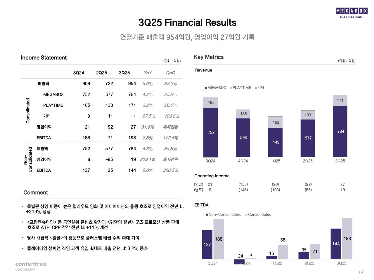 콘텐트리 중앙 IR 자료실 경영실적발표
