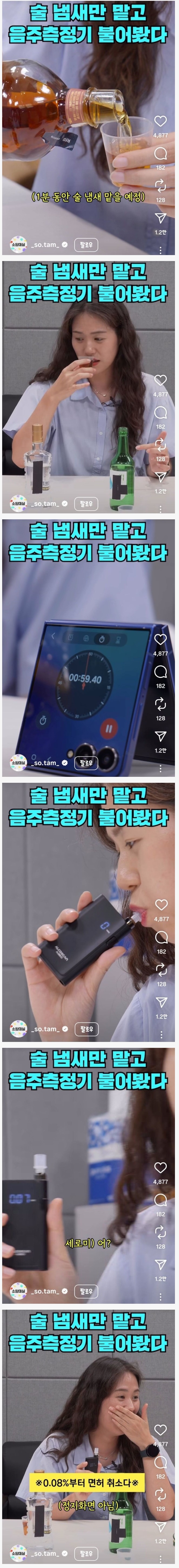 술 냄새만 맡고 음주측정기를 불어본 결과