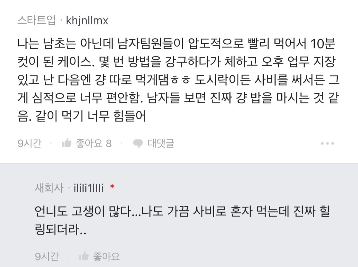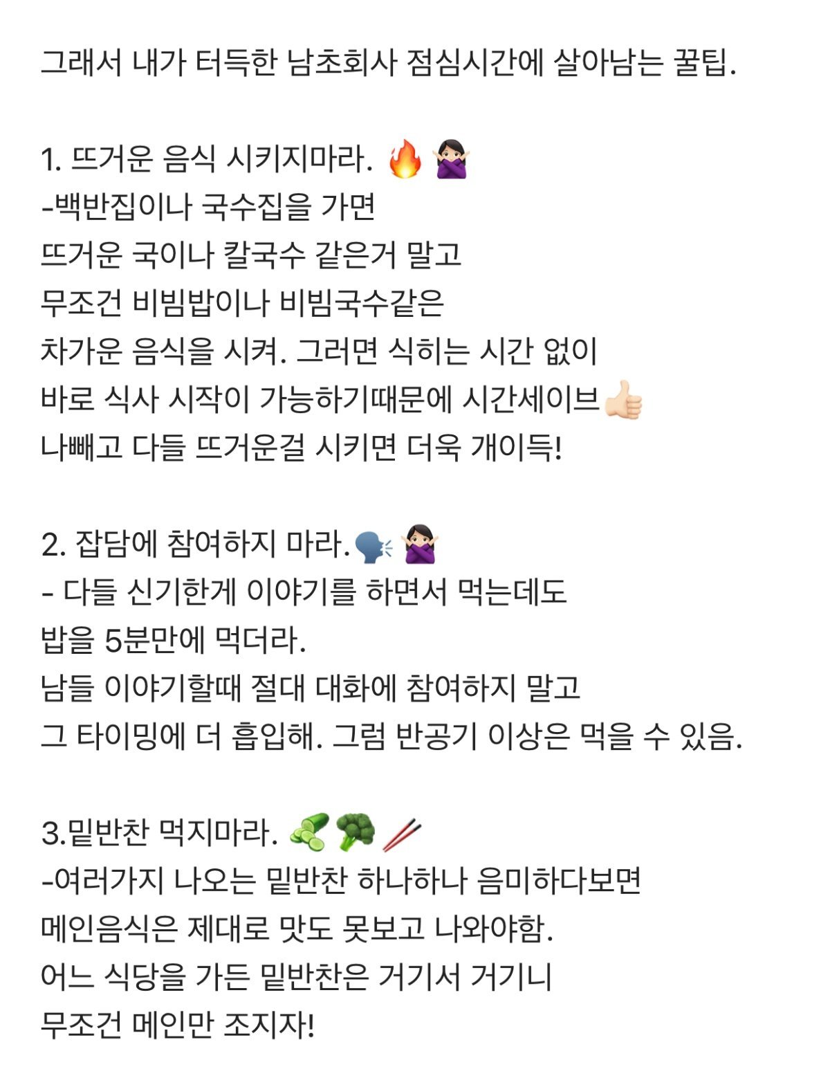 남초 회사 다니는 여직원 특징 댓글 1 조회 574 2025-11-09 11:48 가지마라 Lv.3 게시글 보기 총 게시글: 879개 총 댓글: 0개 가지마라님의 다른 글 25.11.28 인간으로 태어났으면 좀 풀냄새도 맡고 비도 좀 맞고 25.11.28 디씨 컴갤러 조립PC 주문 대참사 25.11.28 검도 vs mma선수 종결 25.11.28 입사 초기 vs 3년 차