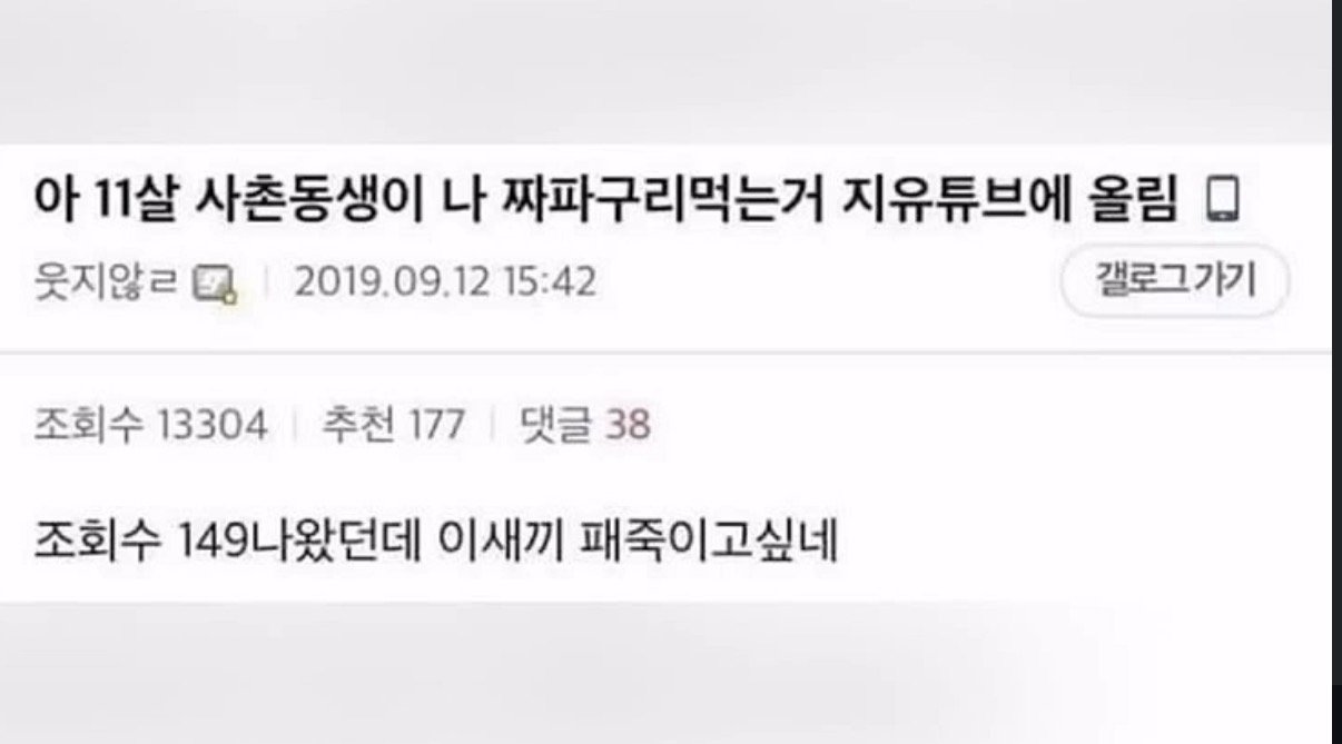 11살 사촌동생이 나 짜파구리 먹는거 지 유튜브에 올림