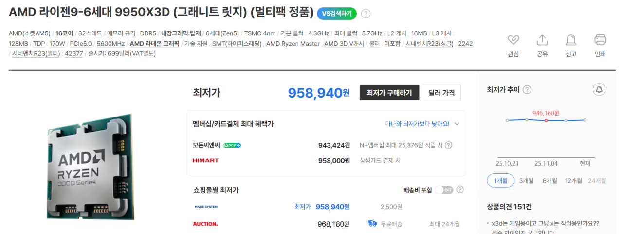 CPU, 메인보드는 오히려 가격 떨어짐 그런데 겨우 1-2만원 떨어진거라..