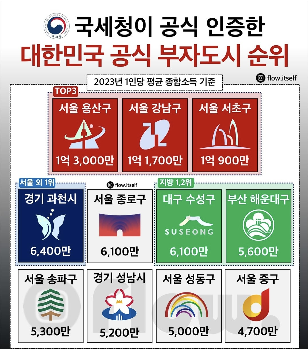 "국세청 인증" 2025년 부자동네 순위
