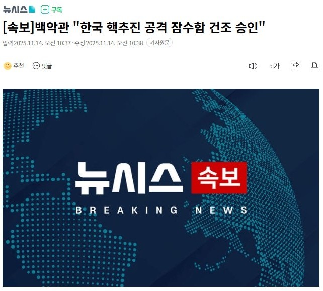 속보) 백악관 "한국 핵추진 공격 잠수함 건조 승인"