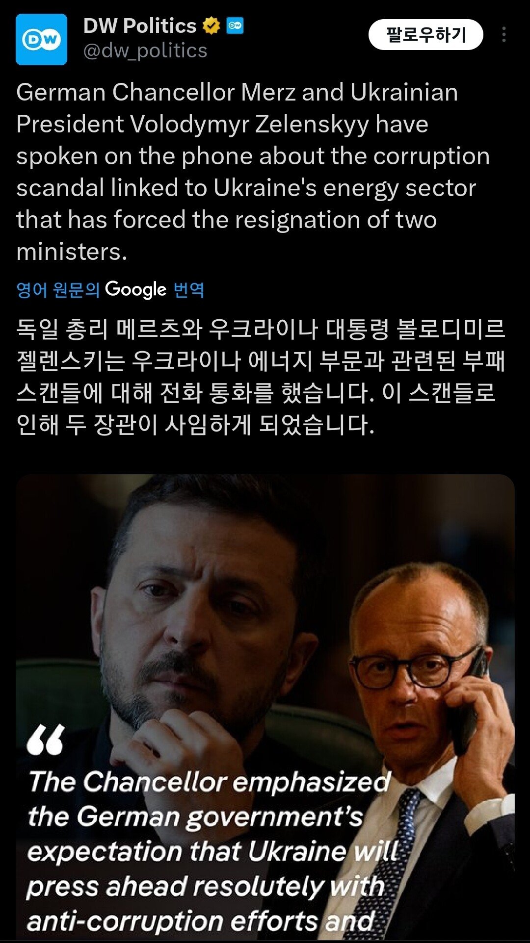 *참고로 최근에 젤렌스키가 부패수사국(?) 통제하려다 시위나고 유럽 정치인들 경고로 무산된 적 있음
