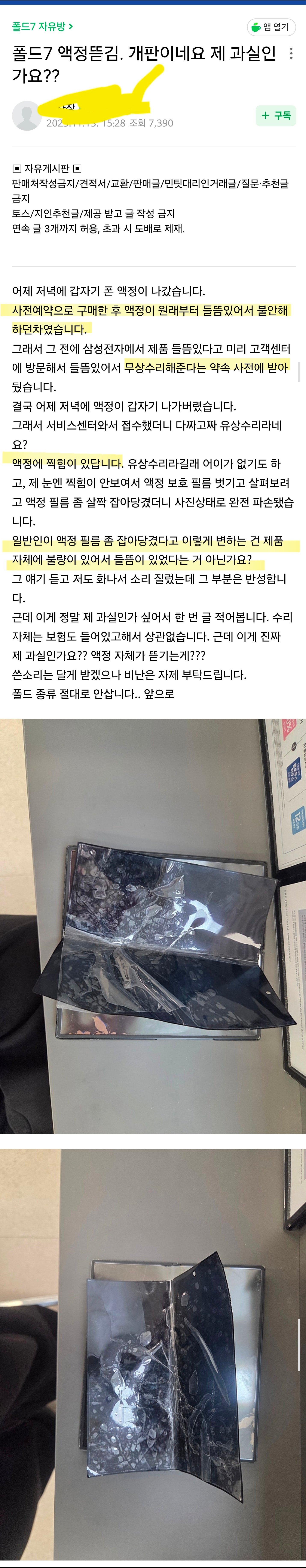 6. 댓글보면 액정필름 강제로 뜯으면 안된다는걸