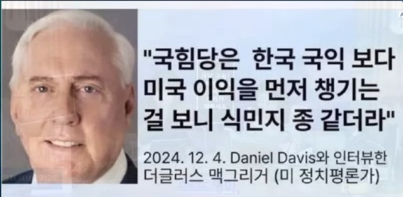 美 정치평론가 "한국의 국힘당은 미국의 식민지 종