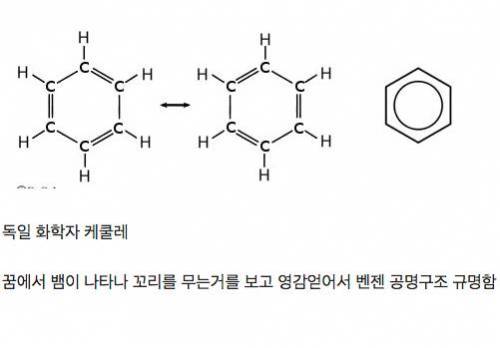 케쿨레가 꿈에서 뱀이 자기 꼬리를 물고있는 것을 보고 발견함