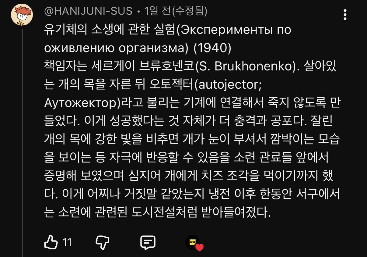 (약혐) 1939년에 일어난 죽은 개의 머리를 살리는 실험