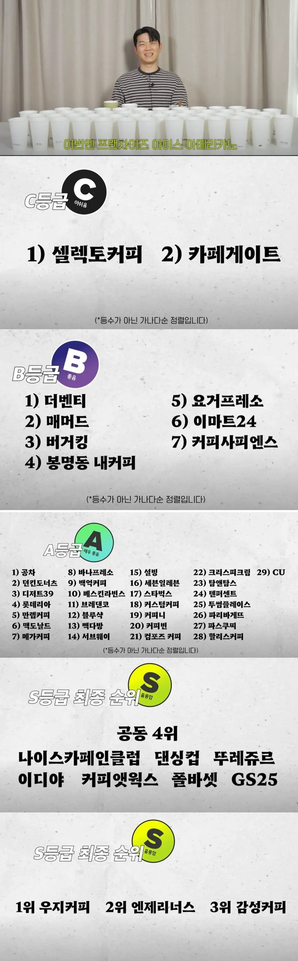 20만커피유튜버 피셜 아이스 아메리카노 티어표