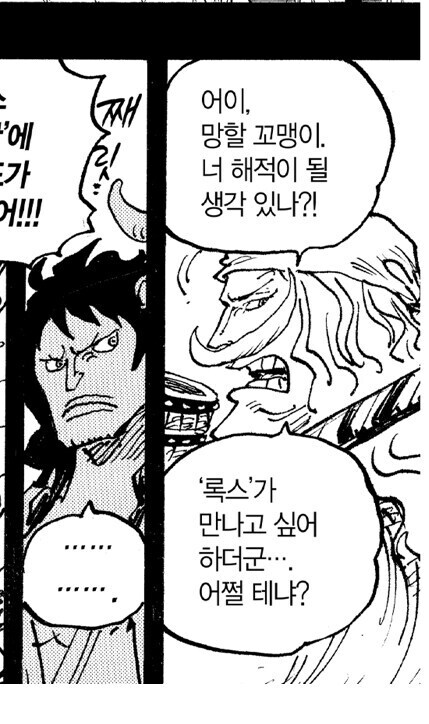 로저에게는 대등한 라이벌 의식을 보이면서도, 흰수염에게는 또 다른 형태의 존경과 경계가 동시에 담겨 있다. (흰수염이 동생이다.)