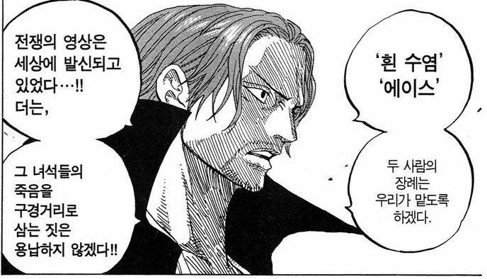 "흰수염과 에이스의 죽음을 구경거리로 삼는 짓은 용납하지 않겠다."
