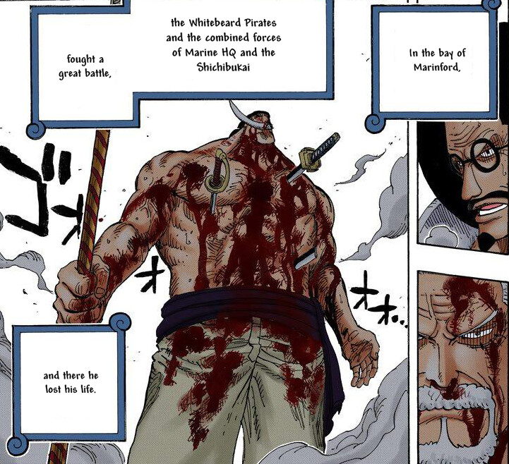 이 장면은 흰수염이 결국 죽음에 이르는 데 있어 가장 결정적인 손상이었으며,