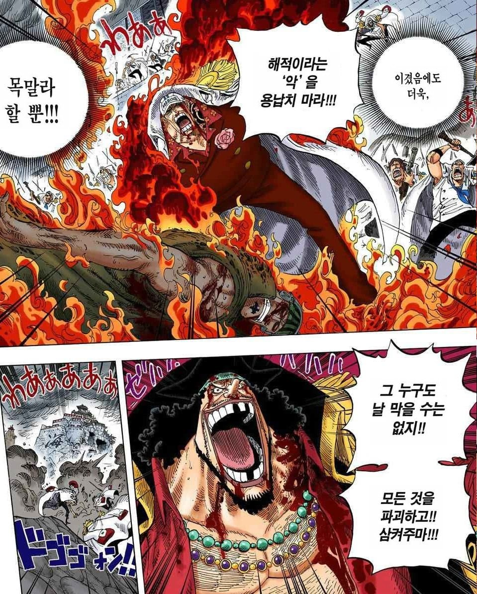 사황과 해군대장의 정면승부였던 흰수염 vs 아카이누는 원피스 전체에서도 손꼽히는 빅매치다.