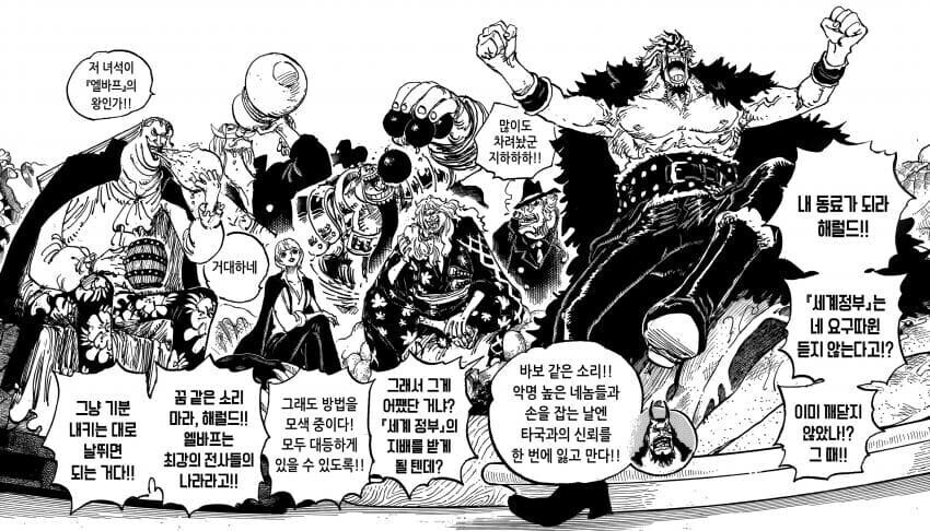 흰수염이 가진 절대적 카리스마를 더욱 부각시키는 장면이다.