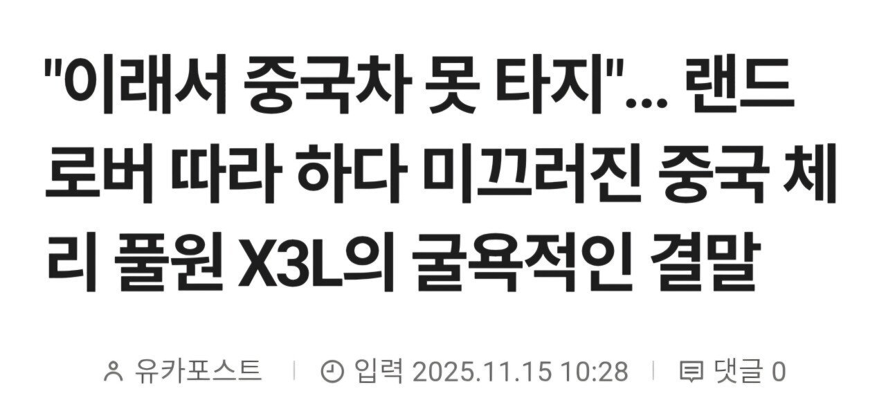 "이래서 중국차 못 타지"... 랜드로버 따라 하다 미끄러진 중국 체리 풀원 X3L의 굴욕적인 결말 | 유카포스트