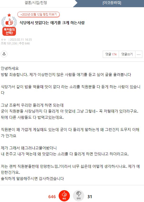 식당에서 맛없다는 얘기를 크게 하는 사람