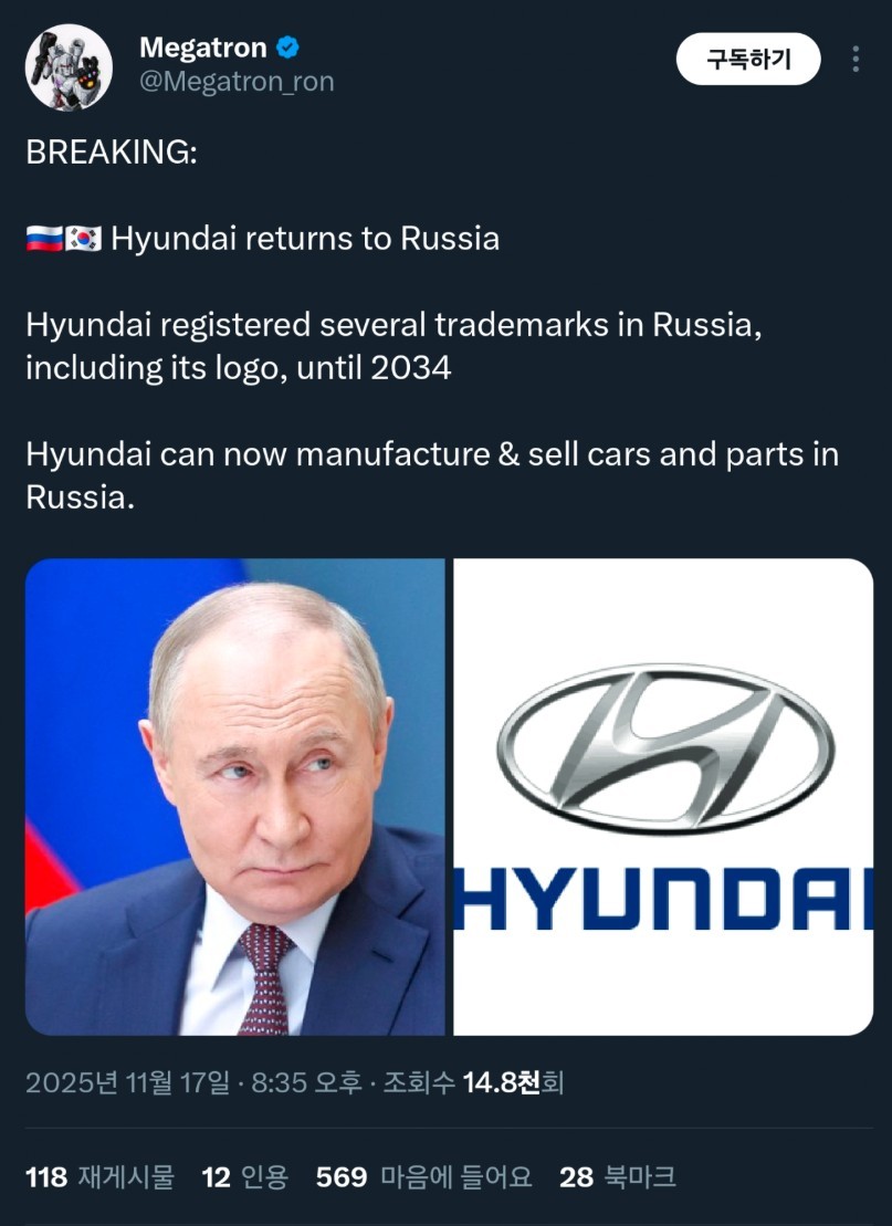 현대는 2034년까지 러시아에서 로고를 포함한 여러 상표를 등록했습니다.