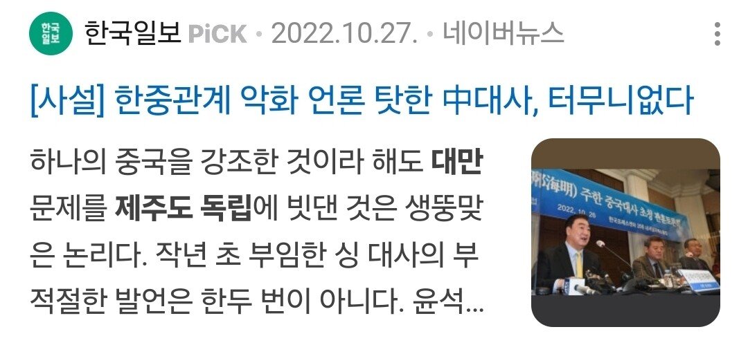 이왜진. 이듬해에는 무려 다른 사람도 아닌, 주한 중국대사 입에서"대만=제주도"라는 희대의 발언이 나와 버렸다