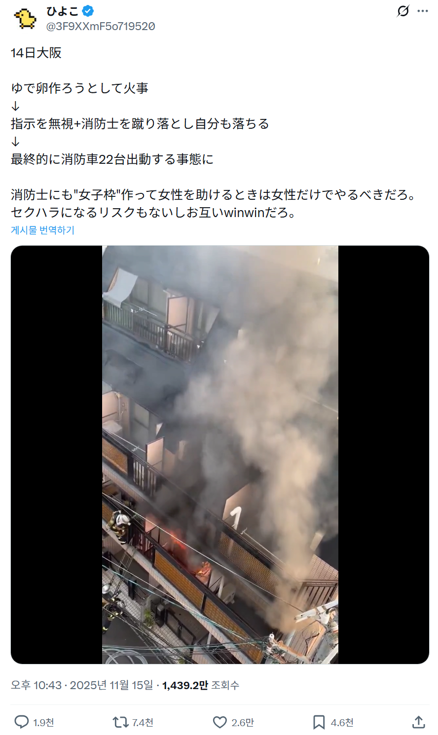 며칠전 오사카에서 구조해주는 소방관 걷어찬 여성 반전