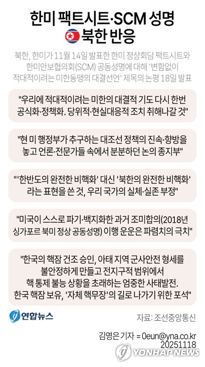 북한 "한국 핵잠 승인 엄중 사태, 핵도미노 초래" 성명 발표