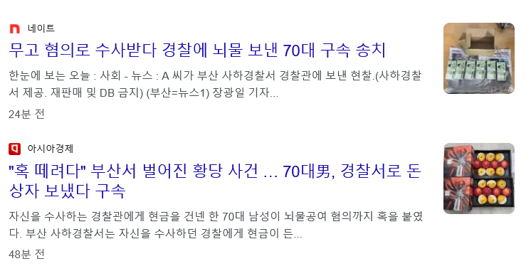 고소당하자 경찰서에 뇌물 보낸 70대 구속