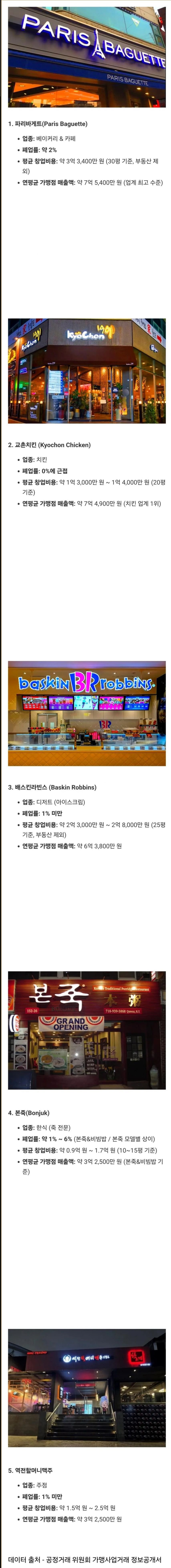 2025 폐업률 낮은 프렌차이즈 TOP 5