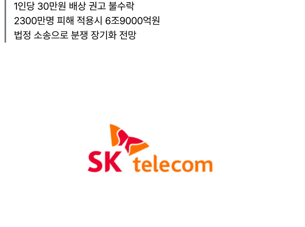 1. 분쟁조정위에서 SKT대상으로 단체소송건 3998명에게 1인당 30만원 보상하자고 조정함. 대략 12억원