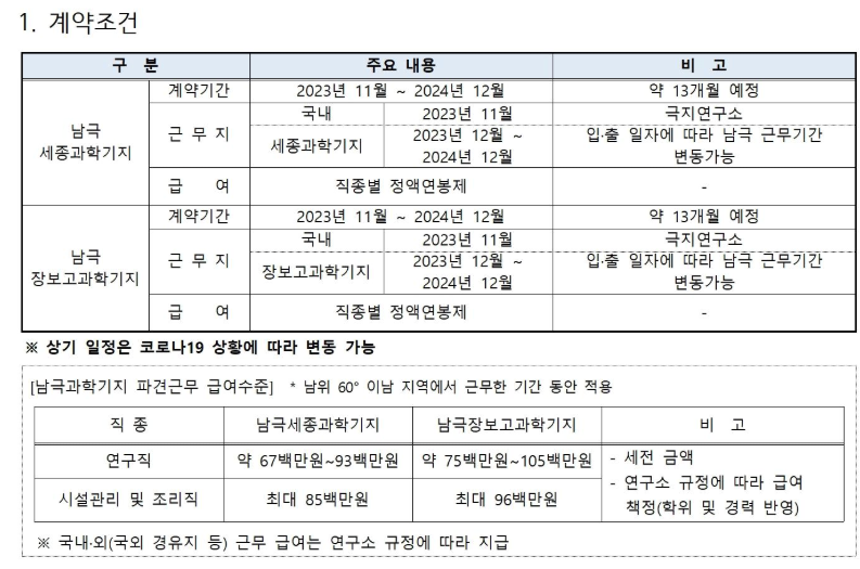 남극 과학기지 조리직 모집 자격요건