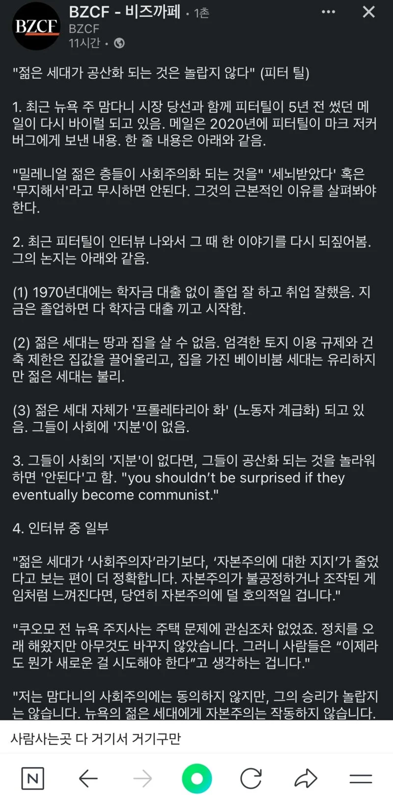 피터틸이 2020년 페이스북 임원들에게 보낸 이메일이 다시 회자되고 있는 이유다. "젊은 세대가 자본을 축적하지 못한다면, 그들은 자본주의에 이해관계를 잃게 될 것이다. 결국 그 체제에 등을 돌리게 된다."