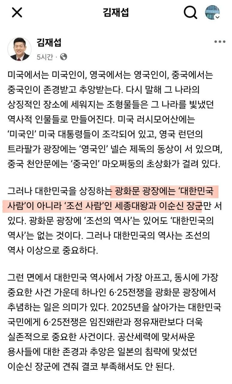 김재섭 "이순신과 세종대왕은 한국 사람 아냐"