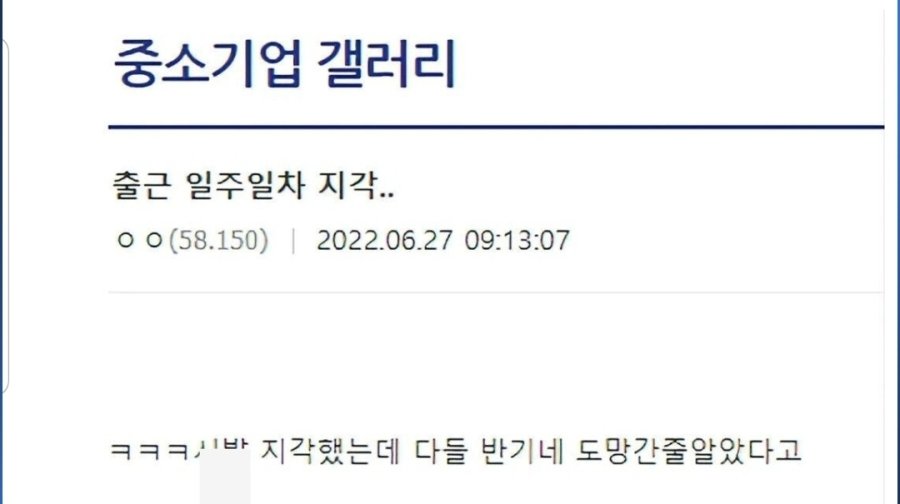 중소기업 출근 일주일 차에 지각한 신입