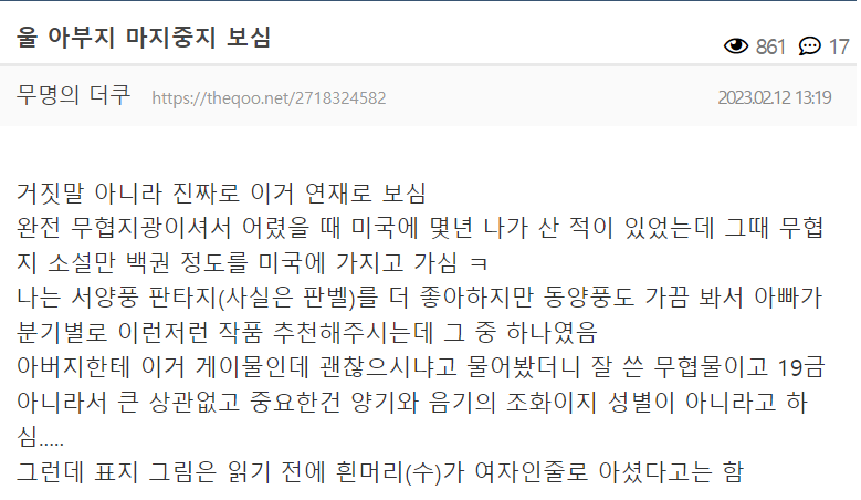 재미만 있으면 장르 안 가리는 무협물 형님들