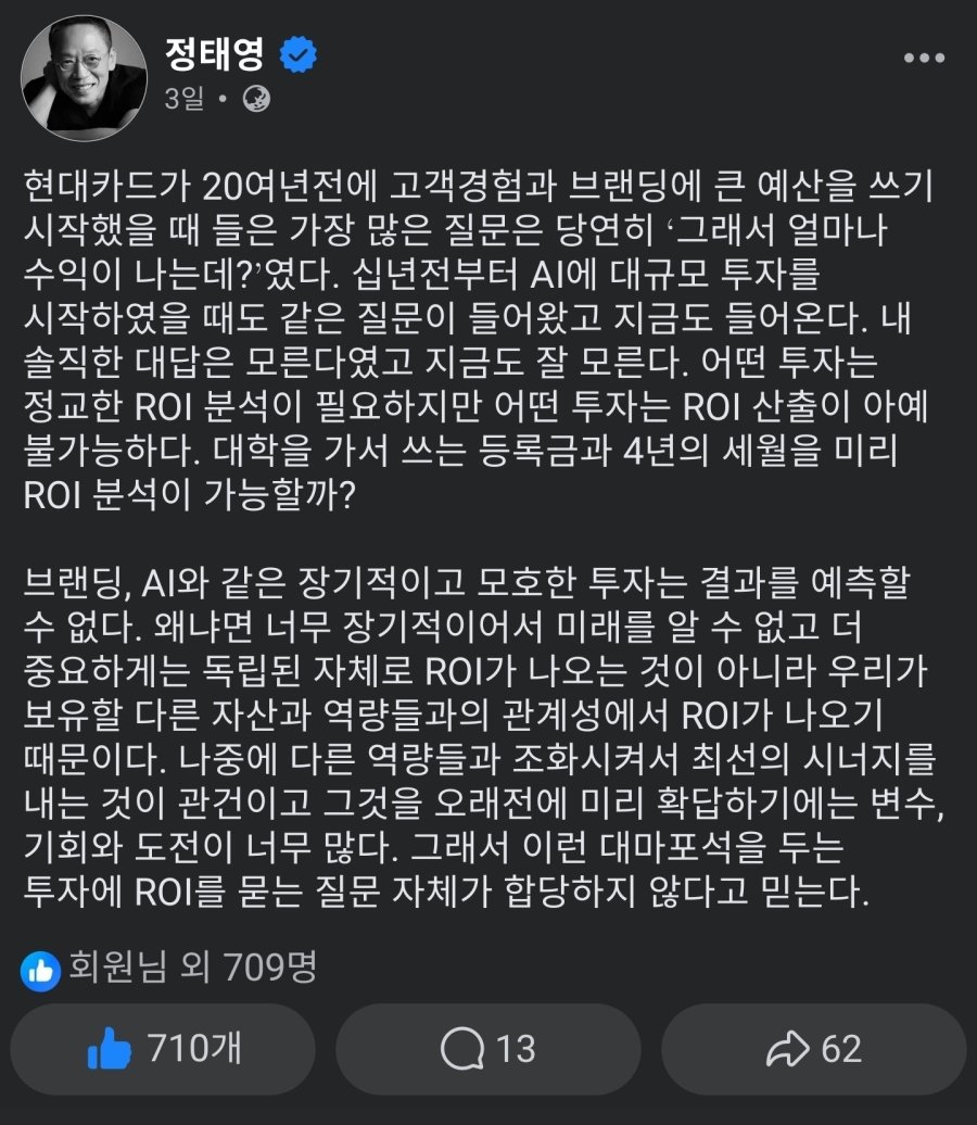 현대카드 정태영 부회장이 말하는 ai 거품론