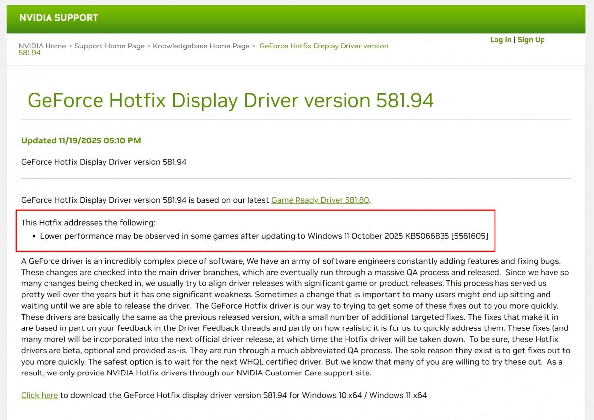 엔비디아는 KB5066835(2025년 10월 업데이트) 또는