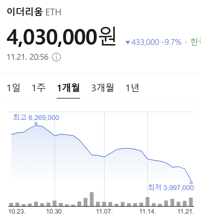 얘네는 그냥 반등도 없이 1달 내내 꼬라박는 중 ㄷㄷㄷㄷ